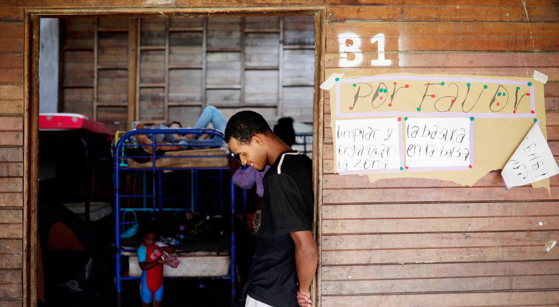 Precisamente, en el albergue, un joven haitiano permanece en el pasillo en silencio, con la mano en la cabeza, pensativo.