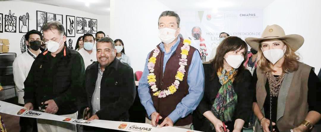 Tuxtla.- El secretario de Hacienda Javier Jiménez Jiménez, junto con el gobernador del Estado, Rutilio Escandón Cadenas, su esposa Rosalinda López Hernández y el magistrado presidente del Tribunal Superior de Justicia del Estado, Guillermo Ramos Pérez, inauguraron el módulo temporal de expedición y canje de licencias para conducir en la Feria Chiapas 2022.