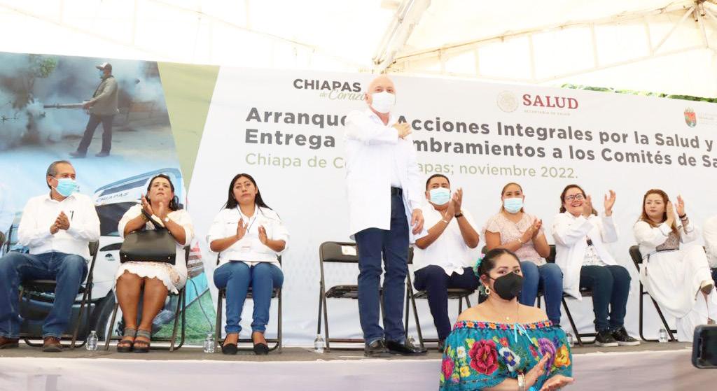 Chiapa de Corzo.- Con el firme compromiso de garantizar la mejora continua de los servicios médicos y contribuir en la trans formación de la salud pública como parte fundamental para el desarrollo de los municipios, el secretario de Salud del estado, doctor Pepe Cruz, dio el arran que a acciones integrales por la salud, que beneficiarán a seis municipios, e hizo entrega de nombramientos a 50 comités de salud de Chiapa de Corzo.