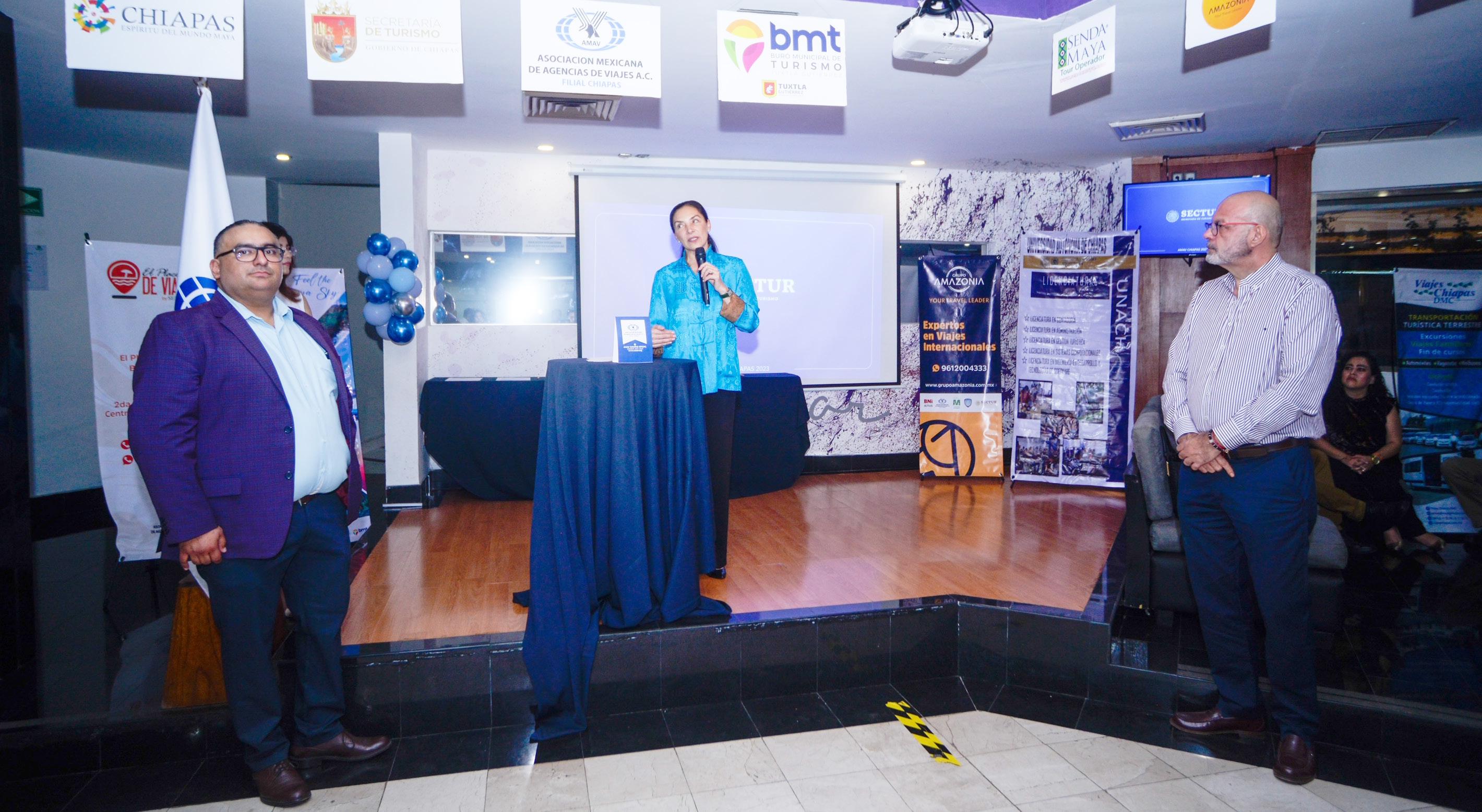 Servytur, entregó un reconocimiento a la comisaria general Gabriela Zepeda Soto por su participación en la conferencia, resaltando además su labor a favor del bienestar y seguridad de las familias chiapanecas.