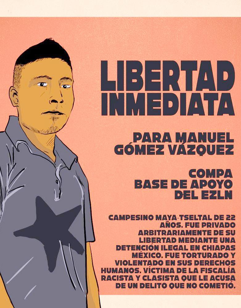 dades la pronta liberación de Manuel Gómez Vázquez, originario de ejido El Censo, municipio de Ocosingo, quien según ellos fue encarcelado de forma injusta, desde hace más de dos años, por doble asesinato. Aclararon que al compañero, internado en el CERSS número 16 de Ocosingo, lo intentan criminalizar y por ello le inventaron pruebas para tenerlo preso, sin embargo, dijeron que lo atacan por ser zapatista, “es la verdad. Para los malos gobiernos el ser zapatista es un delito que se castiga con calumnias, persecución, cárcel y muerte”. Como Junta de Buen Gobierno zapatista, dijeron que efectuaron una investigación profunda y verdadera de lo ocurrido, “las autoridades oficiales del ejido El Censo saben que es mentira de lo que se le acusa al compañero, pero tienen miedo de decirlo porque están amenazados de muerte por los familiares de los
