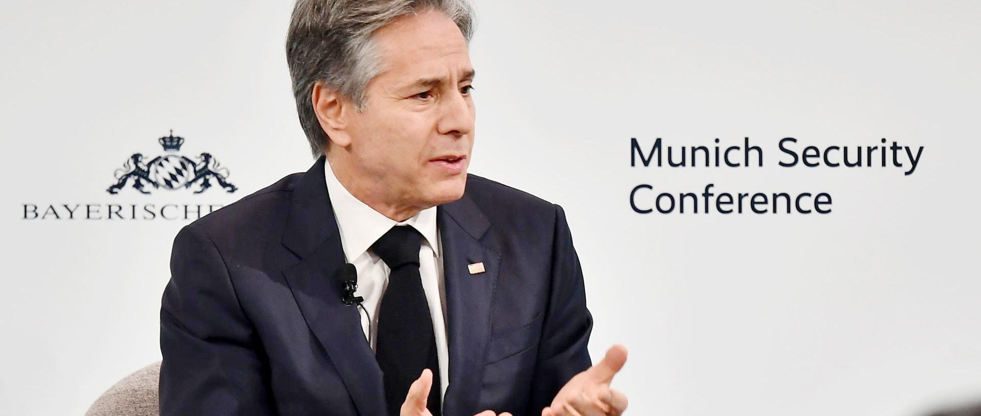 En una reunión que Blinken mantuvo este sábado con el director de la Oficina de la Comisión de Asuntos Exteriores del Partido Comunista de China (PCCh), Wang Yi, en el marco de la conferencia de Múnich, el representante estadounidense advirtió a su interlocutor precisamente contra el suministro de material