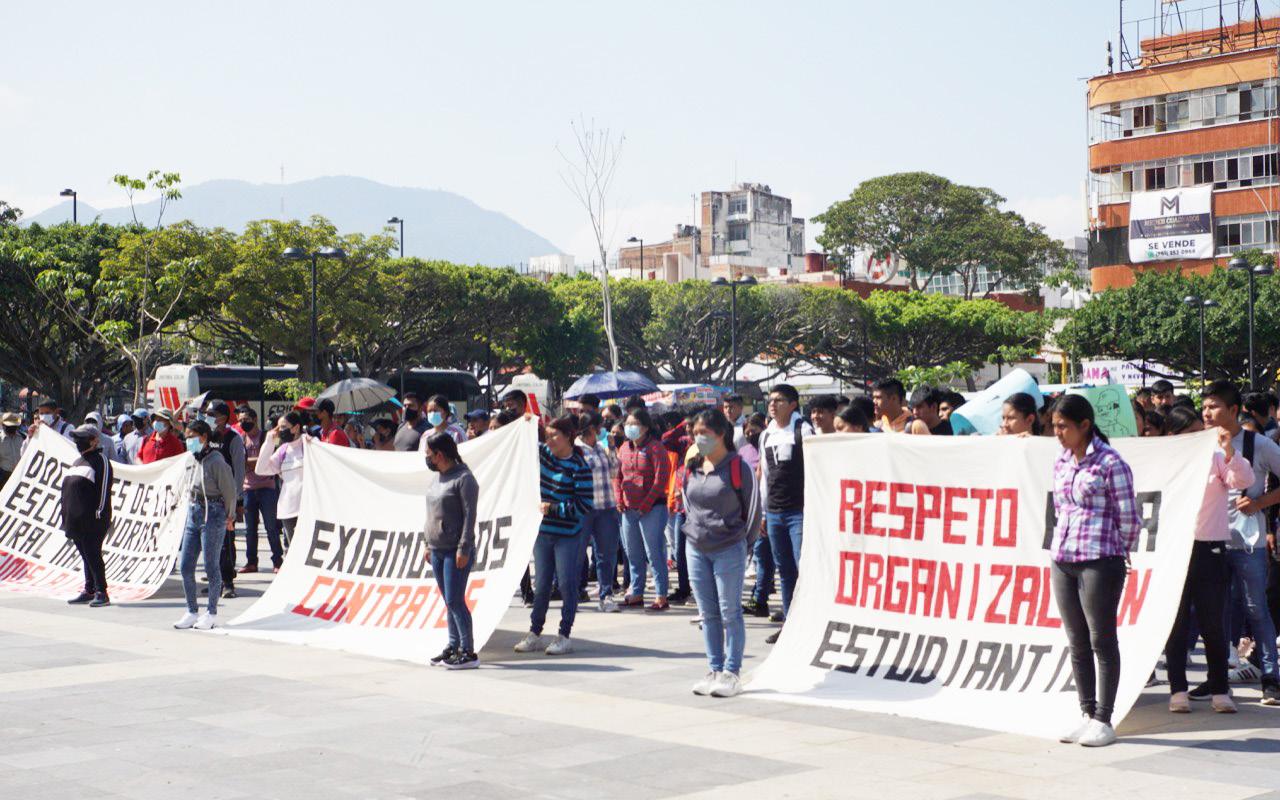 Con marcha y bombas molotov, normalistas piden cumplimiento a demandas