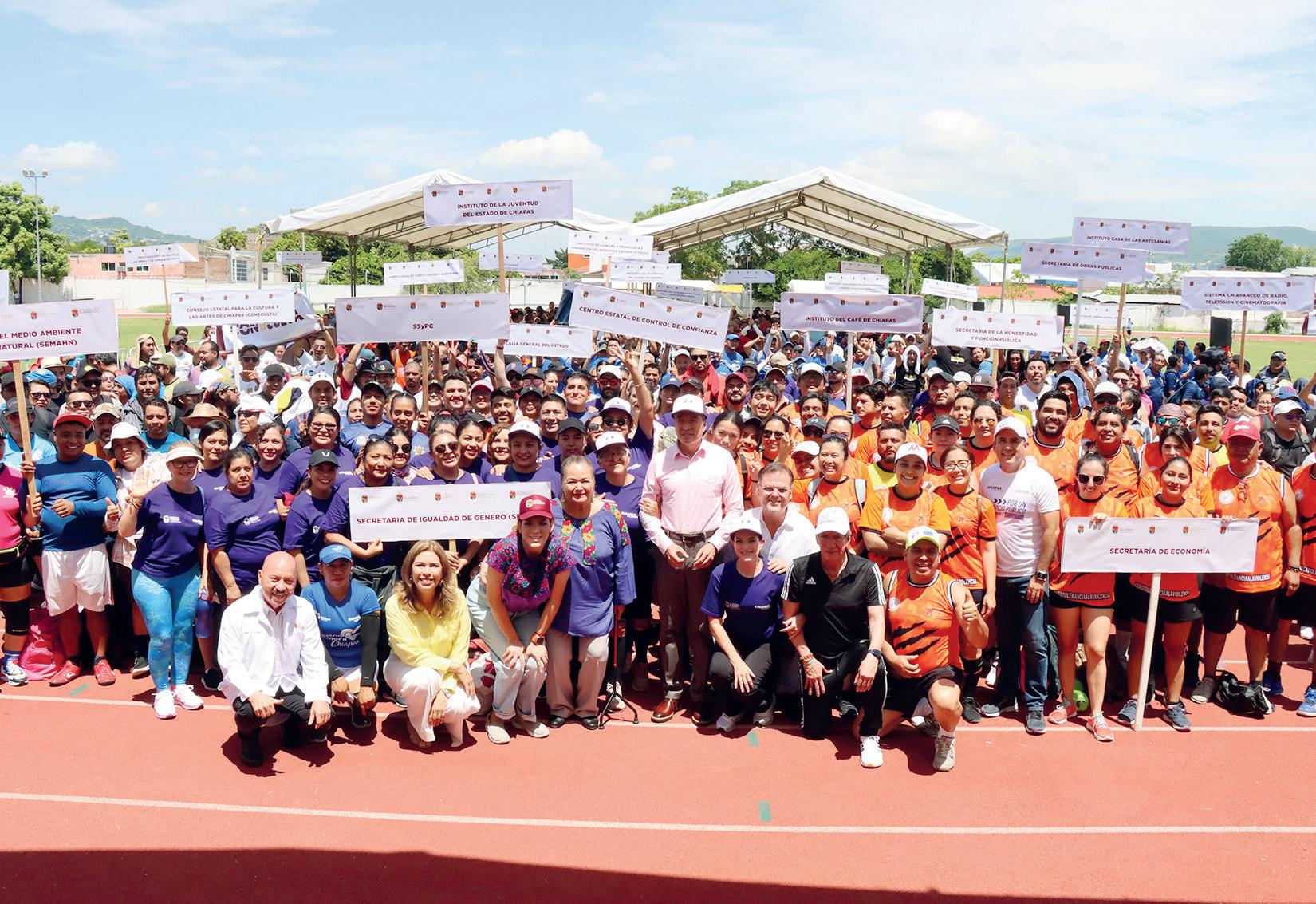 necas y chiapanecos, y como trabajadores de nuestras instituciones; contribuyen a la solidaridad humana, la amistad, la socialización, y dan muy buenos resultados porque la gente que hace deporte trabaja con más entusiasmo y hay más compañerismo, así que el deporte es integral”, expresó.
