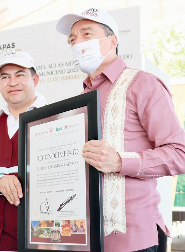 “Reconozco la visión del gobernador Rutilio Escandón Cadenas de impulsar acciones que contribuyen a la capacitación de las y los chiapanecos a través de las nuevas aulas móviles del Instituto de Capacitación y Vinculación Tecnológica que visitarán comunidades y municipios que no cuentan con un plantel y ahora podrán tener capacitaciones en unidades equipadas y acondicionadas con todos los requerimientos para un óptimo funcionamiento en el que se impartirán las especialidades de estética, elaboración de alimentos y corte y confección”, declaró. Finalmente, Llaven Abarca reafirmó su compromiso de respaldar e impulsar iniciativas que promuevan el emprendimiento, autoempleo y el desarrollo de los diferentes sectores de la sociedad, privilegiando siempre a grupos en situación de vulnerabilidad.