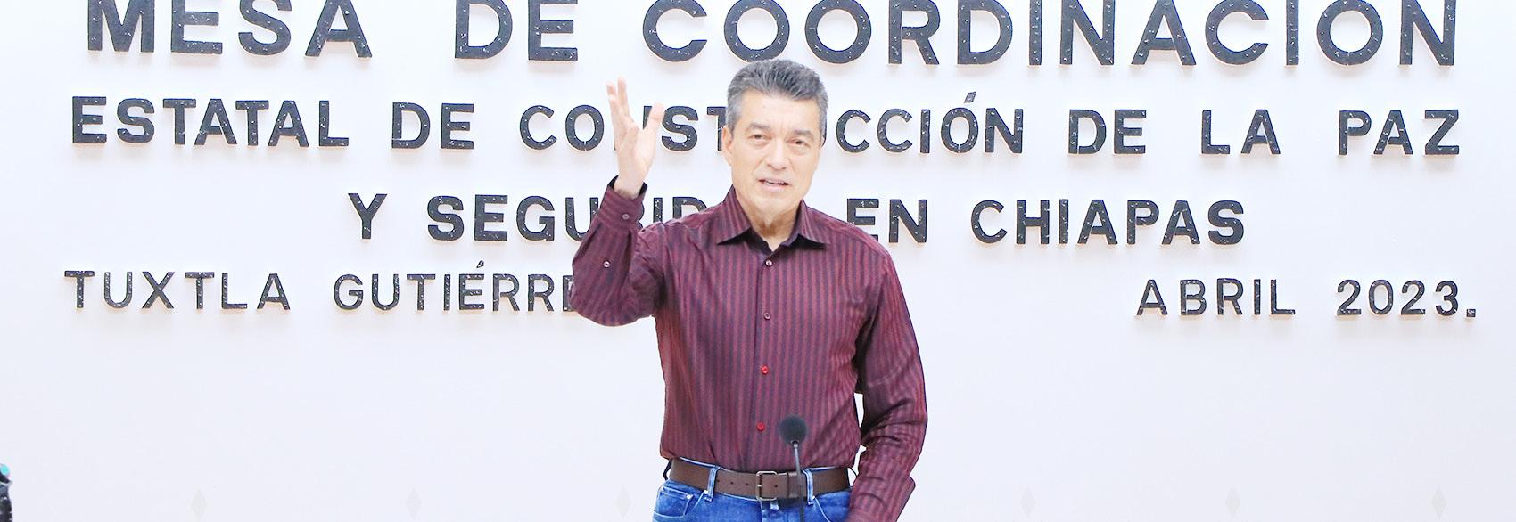 Tuxtla.- En el marco de la Mesa de Seguridad Estatal que todos los días encabeza el gobernador Rutilio Escandón Cadenas en Palacio de Gobierno se informó que derivado de la coordinación de autoridades federales, estatales y municipales para fortalecer las estrategias en materia de prevención y combate de conductas delictivas, Chiapas en las últimas 72 horas registró saldo blanco en delitos de alto impacto, tales como homicidio doloso, secuestro y feminicidio. En su intervención, el mandatario estatal destacó que este resultado es gracias al trabajo interinstitucional de los tres órdenes de gobierno para mantener la paz y el bienestar de las familias chiapanecas, por lo que señaló que el compromiso es continuar redoblando esfuerzos