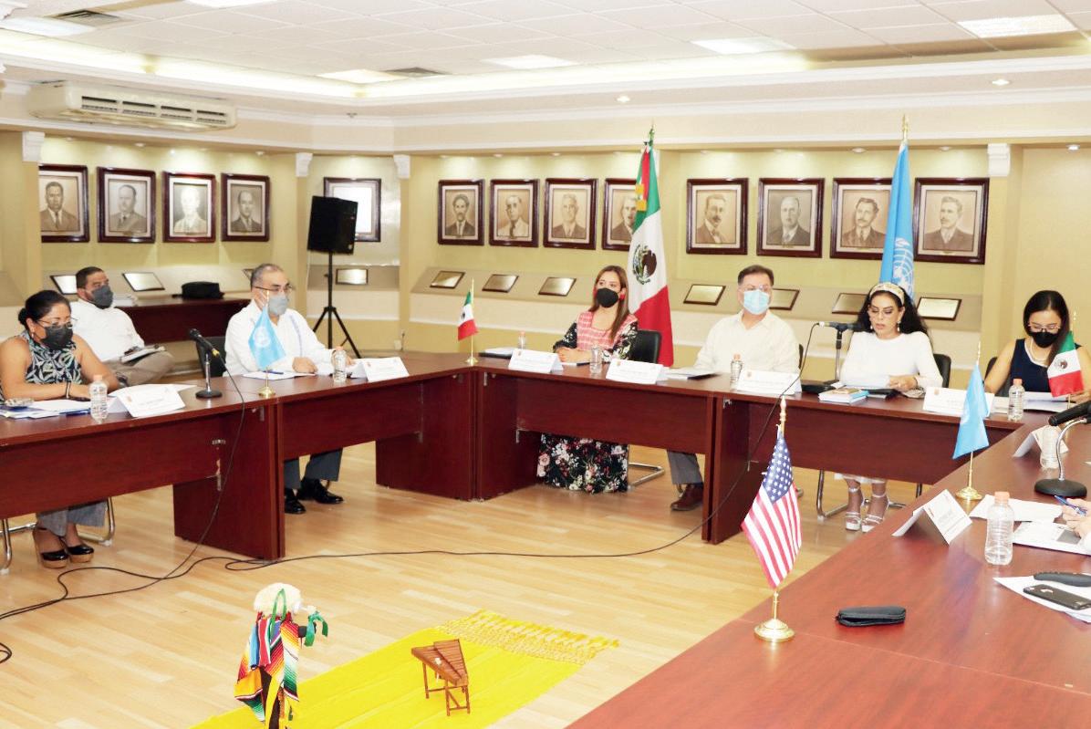 Tuxtla .- El presidente del Tribunal Superior de Justicia y del Conse jo de la Judicatura del Estado, así como titular del Poder Judicial del Estado de Chiapas, Guillermo Ra mos Pérez, encabezó la reunión con representantes de la Oficina de las Naciones Unidas Contra la Droga y el Delito (UNODC, por sus siglas en inglés), con el Poder Ju dicial del Estado, respecto al pro grama de Consolidación del Siste ma de Justicia Penal en México. En este encuentro, el titular de la casa de la justicia chiapaneca, re cibió de las y los representantes de la UNODC, el reporte final so bre el programa de Consolidación del Sistema de Justicia Penal Acu