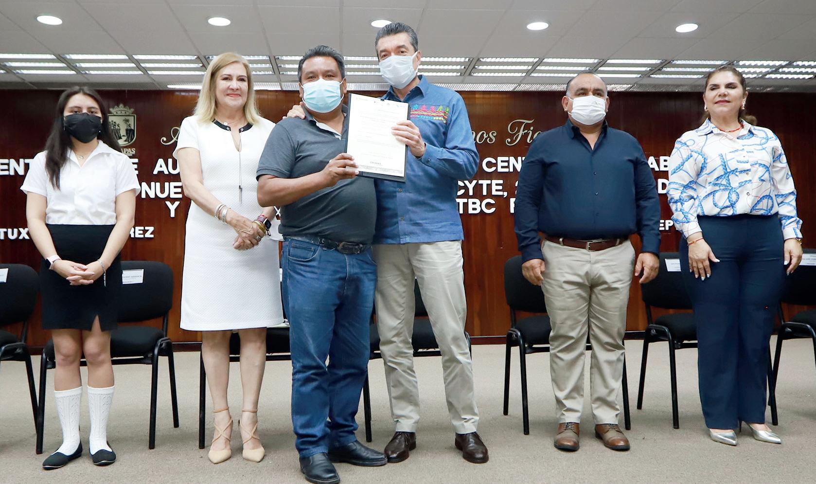En compañía del alcalde Ro berto Pérez Rodríguez, el se cretario destacó que “este tipo de obras no es más que justi cia social, porque las familias tenían muchos años esperan do esta gran noticia que solo el gobernador Rutilio Escandón está haciendo realidad”. Durante el recorrido, el funcio