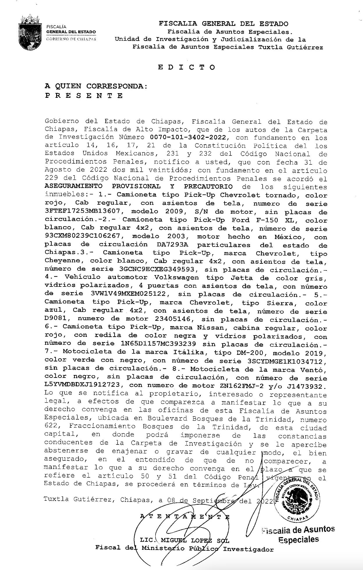 “nos dan días para salirnos, has ta que el 2 de octubre, por la no che, llegan en ocho camionetas de nuevo a intimidar, nos hacen preguntas de los dirigentes de nuestra organización, como no accedieron, los golpearon”. Lo que harán, dijo, es que las autoridades estatales se enteren de lo que ocurre, e incluso este mismo martes acudirían a la Co misión Estatal de Derechos Hu manos y a la Fiscalía General del Estado a interponer las denuncias correspondientes.