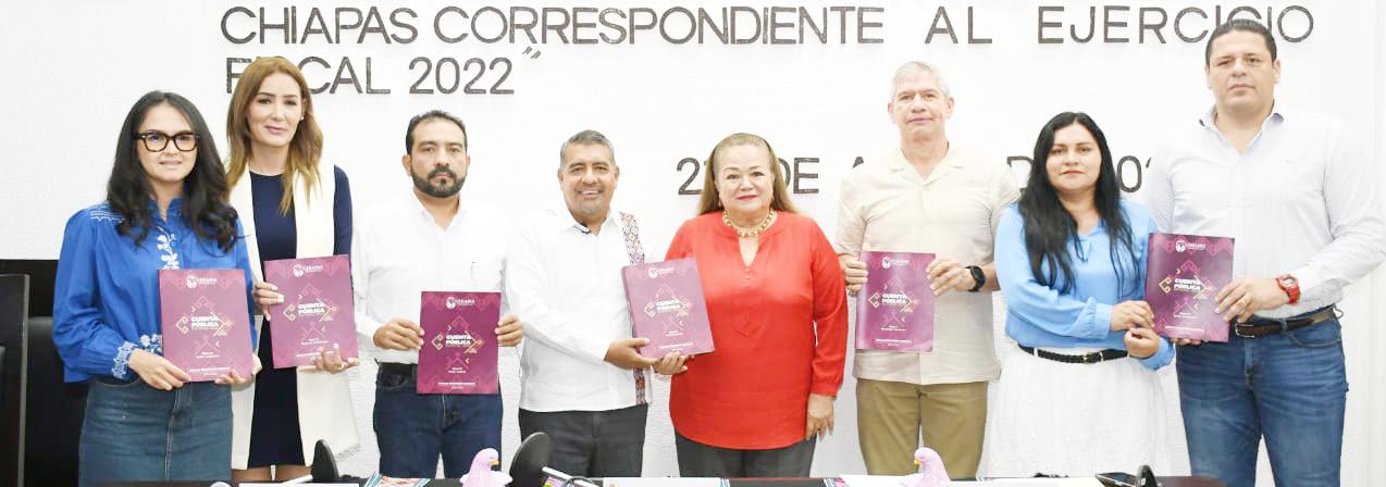 Tuxtla.- En cumplimiento a lo dispuesto en el artículo 59 fracción XIX de la Constitución Política del Estado Libre y Soberano de Chiapas y 13 de la Ley de Fiscalización y Rendición de Cuentas del Estado de Chiapas, y atendiendo las instrucciones del gobernador del Estado, Rutilio Escando Cadenas, el secretario de Hacienda, Javier Jiménez Jiménez, realizó la entrega de la Cuenta Pública Estatal, correspondiente al ejercicio fiscal 2022, al Congreso del Estado. Dicho documento contiene información contable, presupuestaria, programática y patrimonial, así como los requerimientos de la Ley de Disciplina Financiera de las Entidades Federativas y los Munici-