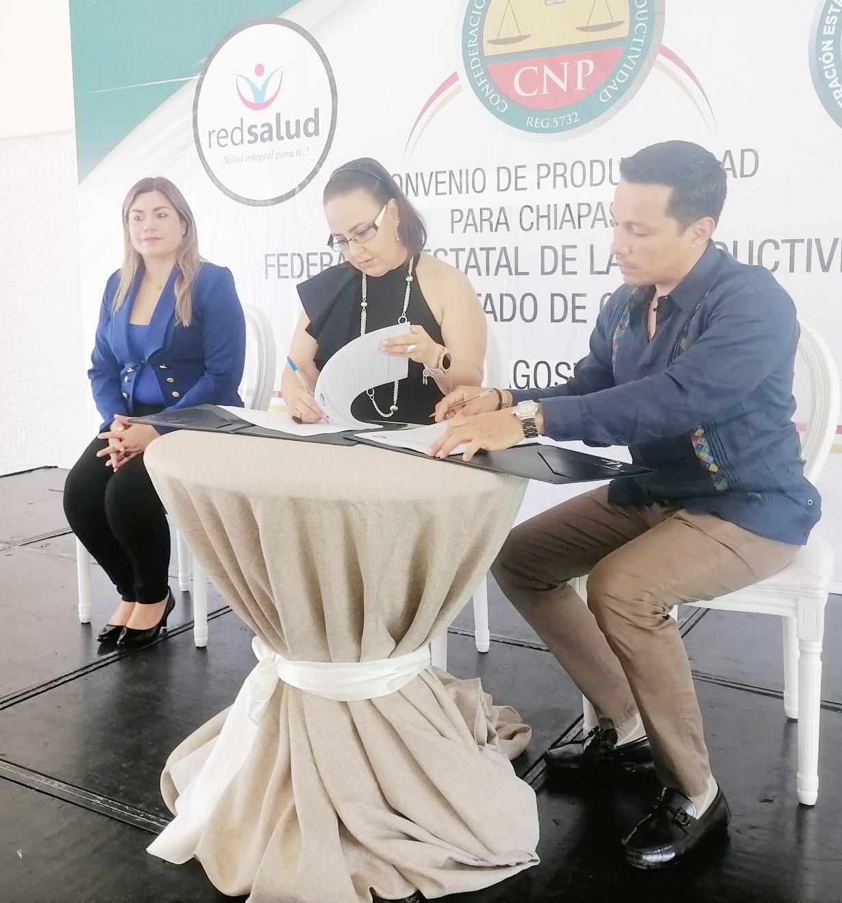 Tuxtla.- La Federación Estatal de Chiapas de la Confederación Nacional de la Productividad (Fepechis) y la Fundación de la Red Salud firmaron este miércoles un convenio de colaboración en busca de beneficios para los gremios laborales locales y del empresariado.