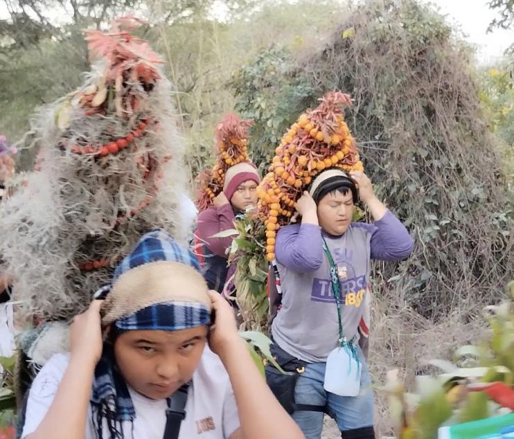 Cada hombre trae cargando de regreso la flor a cuestas, en manojos, es bastante pesada y primero tienen que revisar que no traiga animales ponzoñosos, luego, tienen algunos parajes antes de volver al pueblo donde tienen descansos, misas, llegan sus familiares y les llevan comida, pozol y mu -
