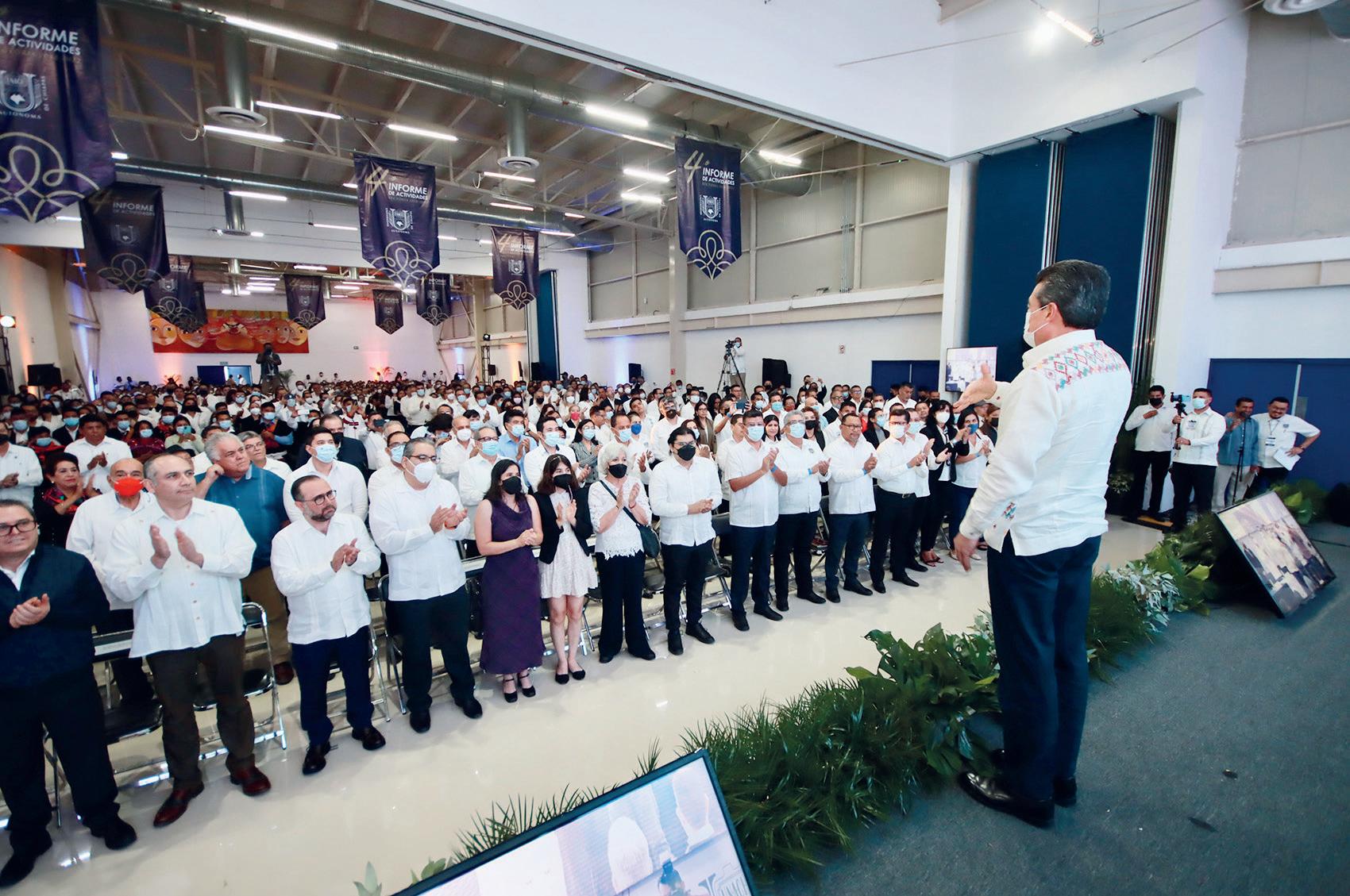 Tuxtla.- En la entrega del Premio Estatal del Deporte 2022 y de estímulos a medallistas de los Juegos Nacionales, Paranacionales y de Primera Fuerza, el gobernador Rutilio Escandón Cadenas reconoció y felicitó a las y los atletas por poner en alto a Chiapas en las diferentes competencias a nivel nacional, al tiempo de refrendar el compromiso de su gobierno de promover, invertir y apoyar aún más al deporte.