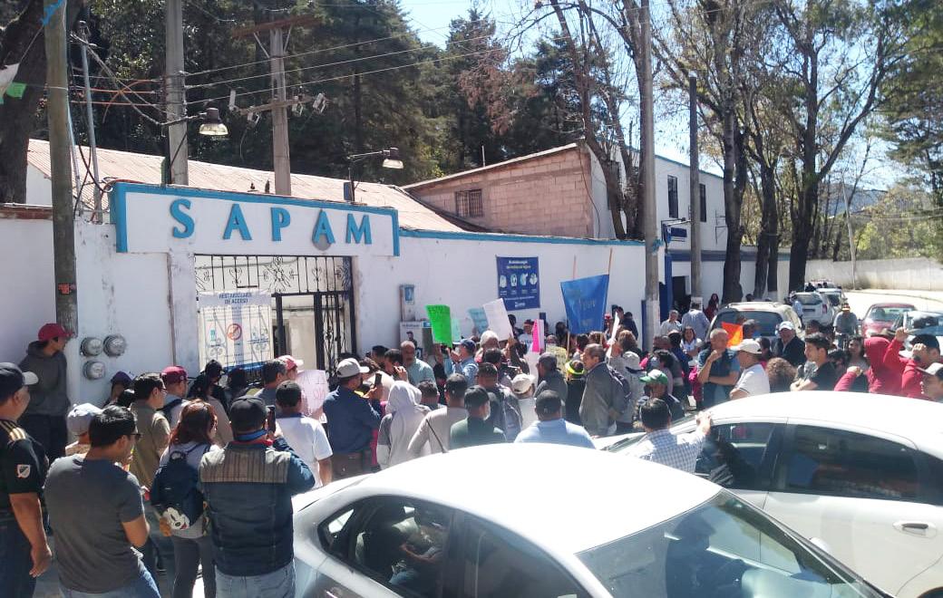 SCLC.- Habitantes de más de 10 barrios, colonias y fraccionamientos de la zona poniente de esta ciudad, se manifestaron a las afueras de las oficinas del Sistema de Agua Potable y Alcantarillado Municipal (SAPAM), ante la falta de suministro de agua potable desde marzo del año 2022, y advirtieron que de no resolverse el problema llevarán a cabo otras acciones como medida de presión.