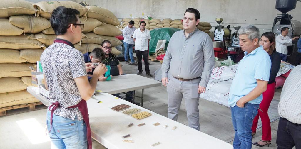 En compañía del ingeniero Edgar Flores Miguel, presidente del consorcio de Café de Chiapas, recorrieron las instalaciones de la planta, conociendo así los diferentes procesos por los cuales pasa el grano de café, para posteriormente ser transportado a los diferentes puntos de venta.