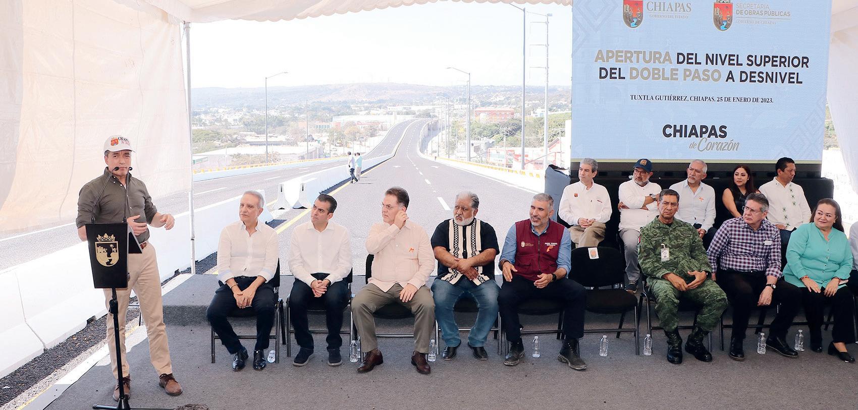 “Reconozco el compromiso del gobernador Rutilio Escandón Cadenas y del presidente Andrés Manuel López Obrador de impulsar proyectos en materia de infraestructura vial en todos los municipios a través de constructoras y mano de obra chiapanecas, contrario a como se hacía en el pasado; hoy con la apertura del nivel superior del doble a paso desnivel se hace justicia social, mejorando la conectividad, la movilidad, el desarrollo y el progreso en la capital chiapaneca”, declaró. Finalmente, el legislador suchiapaneco resaltó que desde la Cámara de Diputados continuará defendiendo y gestionando más presupuesto y más proyectos que contribuyan a mejorar el bienestar y la calidad de vida de las familias chiapanecas.