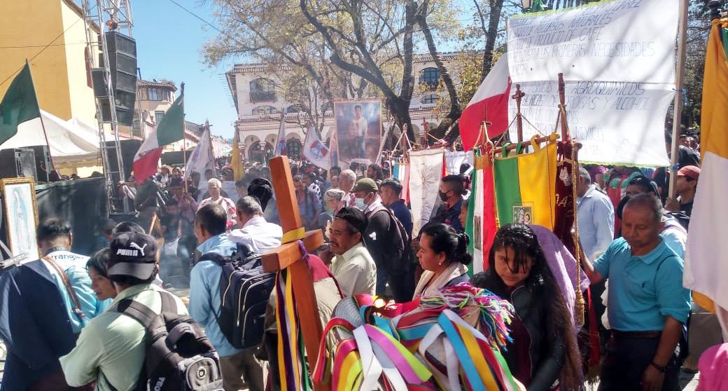 SCLC.- Miles de feligreses y activistas sociales de diferentes organizaciones y parroquias de la Diócesis de esta ciudad realizaron una peregrinación por XII Aniversario de la Pascua de jTatic Samuel Ruiz García, la cual concluyó a un costado de la Catedral, donde el obispo Rodrigo Aguilar Martínez ofició una misa. Previo a la celebración religiosa, una integrante del Pueblo Creyente de la Diócesis, leyó un pronunciamiento en el que se hace énfasis sobre la violencia e inseguridad en varios municipios y comunidades del estado, por la presencia de grupos delincuenciales que no abonan a la paz social, asimismo hicieron referencia que la migración ha incrementado por falta de oportunidades.