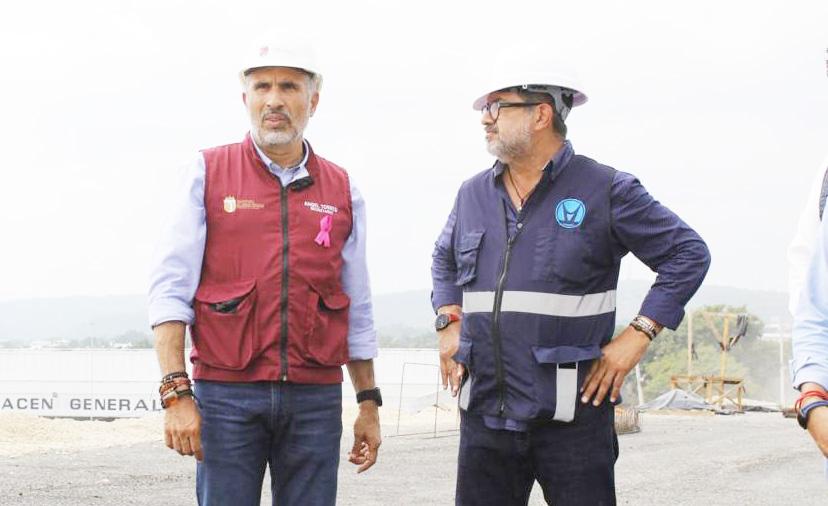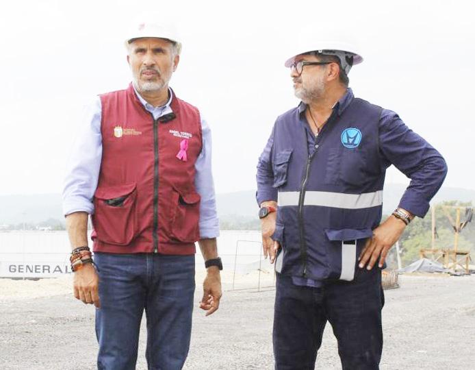 El secretario hizo un recorrido por la obra donde supervisó el colado del puente del arroyo La Chacona, así como la tierra y muro mecánicamente estabili zados, además del inicio de la base de asfalto, la colocación de zapatas, donde se insta