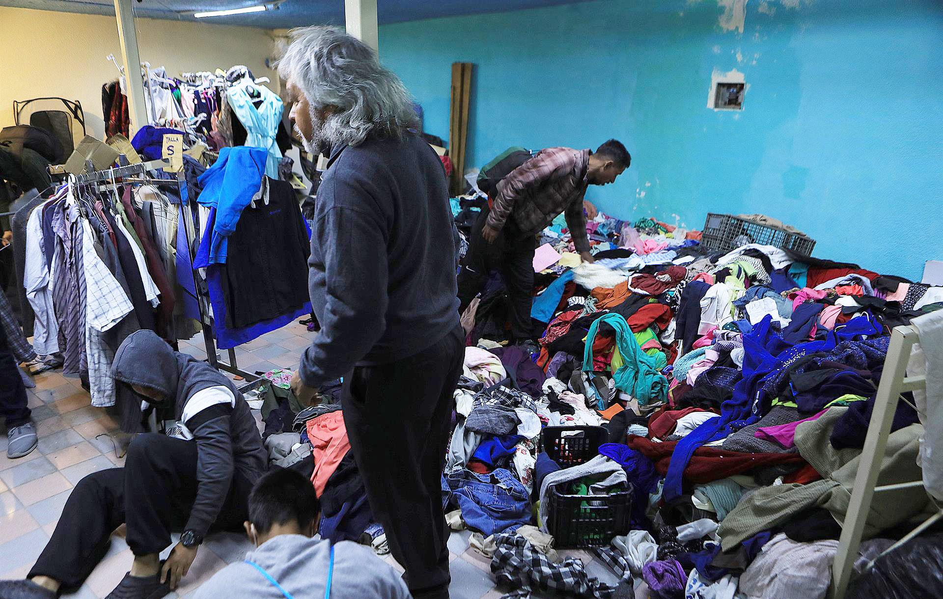 Julio César Morales, coordina dor de la "Gratis Tienda" des tacó que "aquí se les ha dado cobijo, zapatos. Ellos buscan chamarras, pantalón y mochilas principalmente".