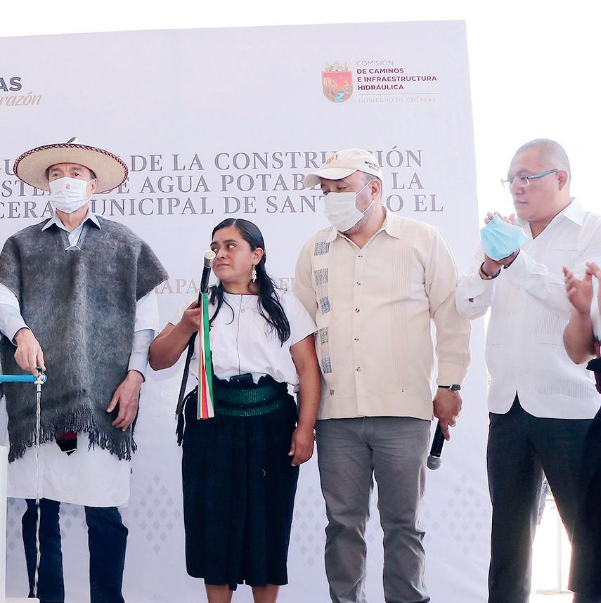 Estuvieron presentes: el secretario para el Desarrollo Sustentable de los Pueblos Indígenas, Emilio Ramón Ramírez Guzmán; la diputada local Floralma Gómez Sántiz; el gestor de la zona indígena para la construcción del Sistema de Agua Potable, Sebastián Pérez Sántiz y el presidente por usos y costumbres de Santiago El Pinar, Alfonso Gómez Gómez.