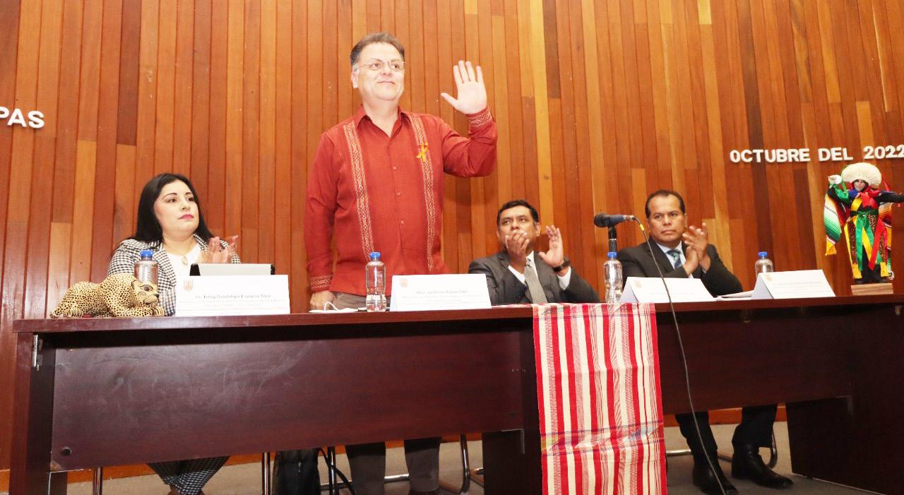 Al finalizar la presentación, el magistrado presidente Ramos Pérez entregó un presente re presentativo de nuestra entidad al autor, hecho por artesanas y artesanos de Chiapas.