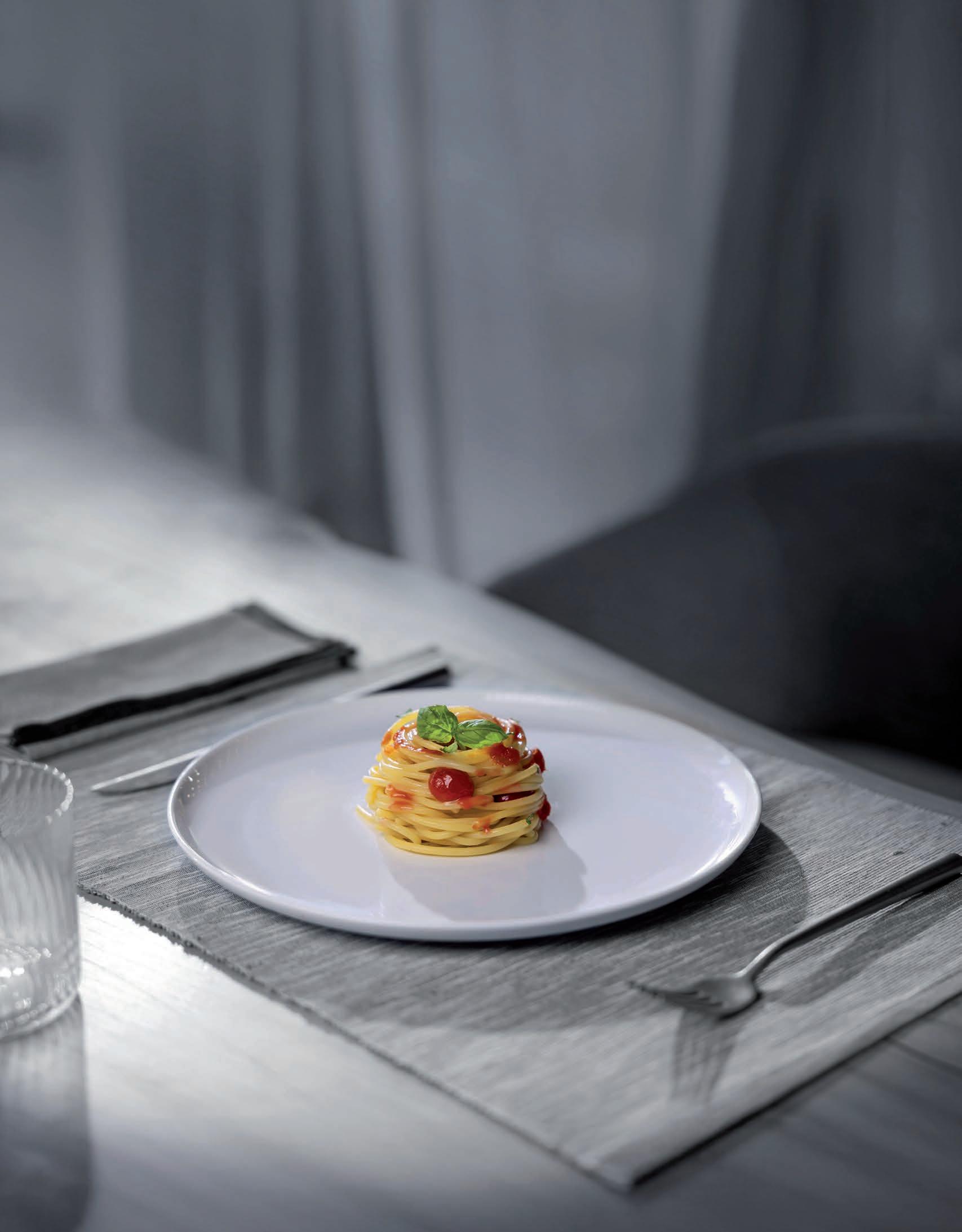 Didascalico anche il contributo di Alberto Gipponi: casoncelli crudi ma cotti, paste sfoglie bollite, il civico 1 di via Santa Croce in quel di Gussago è un pensatoio che si sta interrogando molto sulle testure, mettendo spesso al centro del pensiero paste e reticoli glutinici. Come in Seppia e Rafano, piatto la cui pasta nasce dalla collaborazione con Davide Cassi, professore di fisica della materia presso l’Università di Parma, direttore del laboratorio di Fisica Gastronomica e del Future Cooking Lab: la farina per la pasta viene cotta in forno a 105°C, il processo denatura e forma un nuovo reticolo proteico che porta, una volta impastata e cotta, ad una pasta dal morso teso “molto più che al dente”. Un piatto che mette al centro le strutture -pasta e seppia- quasi indistinguibili, che impegnano la masticazione.