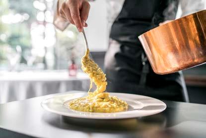 140 g di riso vialone nano, 100 g di burro, 60 g di funghi porcini affettati, 1 g di stimmi di zafferano, 40 g di formaggella di Collio, 30 g di formaggella di Bagolino, 40 g di nostrano della Valtrompia, Brodo vegetale q.b., Vino bianco q.b., Sale q.b. Procedimento