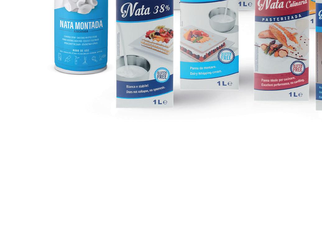 Ken Nata 38%, una panna al 38% di materia grassa senza e con carragenina la cui stabilità naturale e le performance costanti la rendono ideale per ogni tipo di preparazione, da quelle di pasticceria a quelle di cucina e di gastronomia. Ken Nata Azucarada, la zuccherata al 32,5% di grassi, dal sapore fresco e dolce. Estremamente versatili anche i Blend, da montare e per cucinare, come Ken Lactea 35%, dalla texture perfetta, stabile e lucente; Ken Lactea Sugar un altro eccellente preparato a base di panna (al 31%) e nella gamma delle 100% vegetali abbiamo Ken Presto zuccherata, ideale anche come prodotto da taglio e per decorare, adattabile a ogni esigenza con grande facilità di impiego e chiude l’offerta la 100% Vegana e senza lattosio, Ken Gold&Fresh, un prodotto già zuccherato per la pasticceria assolutamente al passo con i tempi.