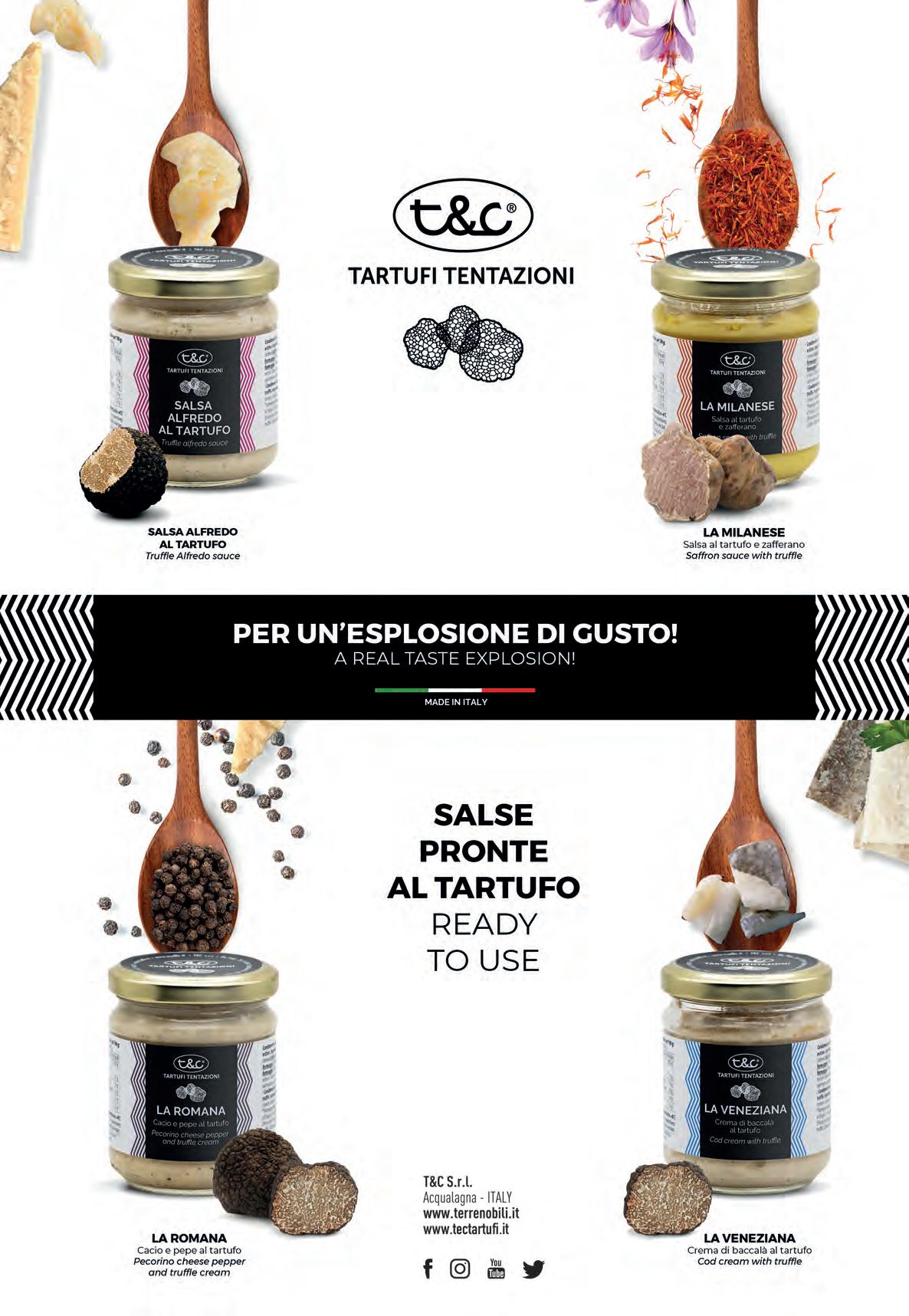 La vasta gamma di prodotti al tartufo di T&C permette all’horeca di avere a menù piatti al tartufo tutto l’anno con un food cost chiaro e prevedibile e un’azienda seria che ha acquisito nel tempo tutte le maggiori certificazioni che seguono gli standard globali della sicurezza alimentare.