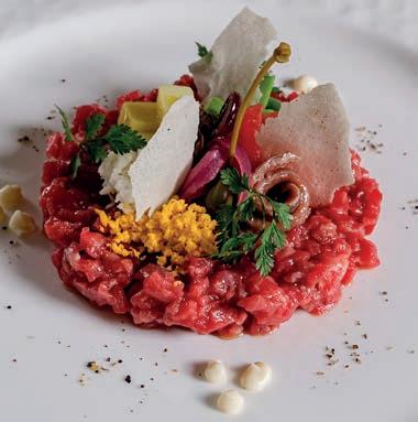 massimo delle sue possibilità, ognuno di noi – siamo tutti giovani – sappiamo come impiegarli al meglio in base a un’organizzazione del lavoro meticolosa e strutturata. Non è semplice, ma tutto è calibrato al millimetro per ot tenere una resa ottimale e funziona. I miei sous chef Neri Reggioli e Silvio Taddei condividono con me questa filo sofia e, insieme, abbiamo raggiunto un buon equilibrio, in cucina e in sala”.
