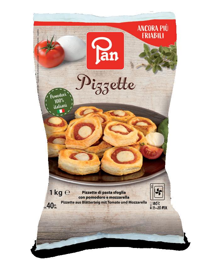 Salatini & Pizzette Pan Surgelati Srl | I-39055 Laives | www.pan.it | info@pan.it aperitivo pan Seguici su @panfoodservice » Sfoglia dorata e luminosa » Preparazione rapida ANCORA PI Ù FRIABILI