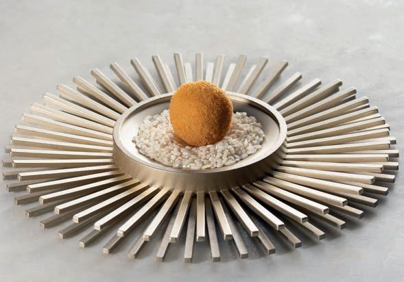 massimo delle sue possibilità, ognuno di noi – siamo tutti giovani – sappiamo come impiegarli al meglio in base a un’organizzazione del lavoro meticolosa e strutturata. Non è semplice, ma tutto è calibrato al millimetro per ot tenere una resa ottimale e funziona. I miei sous chef Neri Reggioli e Silvio Taddei condividono con me questa filo sofia e, insieme, abbiamo raggiunto un buon equilibrio, in cucina e in sala”.