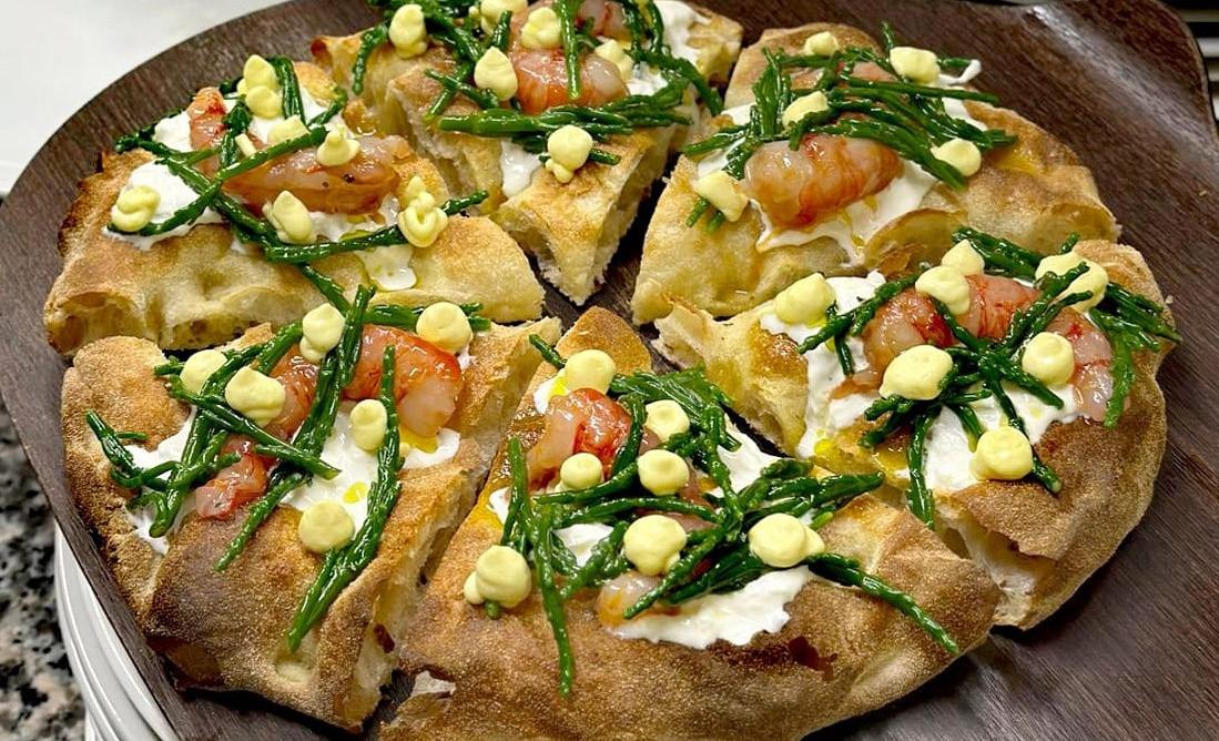 Ma cos’è la pizza HD? Spiega Elia: “Abbiamo puntato sulla pizza in pala ma in versione singola. Di solito la pizza in pala alla romana è concepita al metro: si tratta di un impasto molto idratato, molto croccante e alveolato. Io ne ho fatto una versione rotonda singola, molto più comoda perché non c’è bisogno di condividerla in più persone ed è anche più gradevole esteticamente. L’abbiamo chiama-