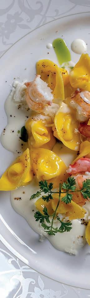 massimo delle sue possibilità, ognuno di noi – siamo tutti giovani – sappiamo come impiegarli al meglio in base a un’organizzazione del lavoro meticolosa e strutturata. Non è semplice, ma tutto è calibrato al millimetro per ot tenere una resa ottimale e funziona. I miei sous chef Neri Reggioli e Silvio Taddei condividono con me questa filo sofia e, insieme, abbiamo raggiunto un buon equilibrio, in cucina e in sala”.