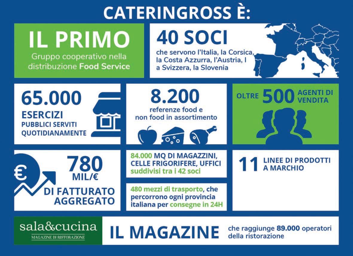 Il primo gruppo della distribuzione italiana nel food service con 40 aziende associate e più di 65.000 esercizi pubblici serviti in ogni regione. DIVENTA ANCHE TU NOSTRO CLIENTE! Cateringross S.C. Via Margotti, 8 40033 Casalecchio di Reno Bologna -Tel. 0516167417 www.cateringross.net