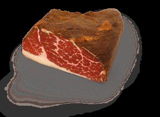 Il processo produttivo prevede che venga lavorato e sta gionato aperto, quindi già disossato. Questo procedimen to permette di salvaguardare l’importante caratteristica della fibra della carne. Si presenta rosso per la parte ma gra, bianco/rosato per la parte grassa. Le due parti sono in perfetto equilibrio tra loro per esaltare le caratteristi che organolettiche del prodotto.