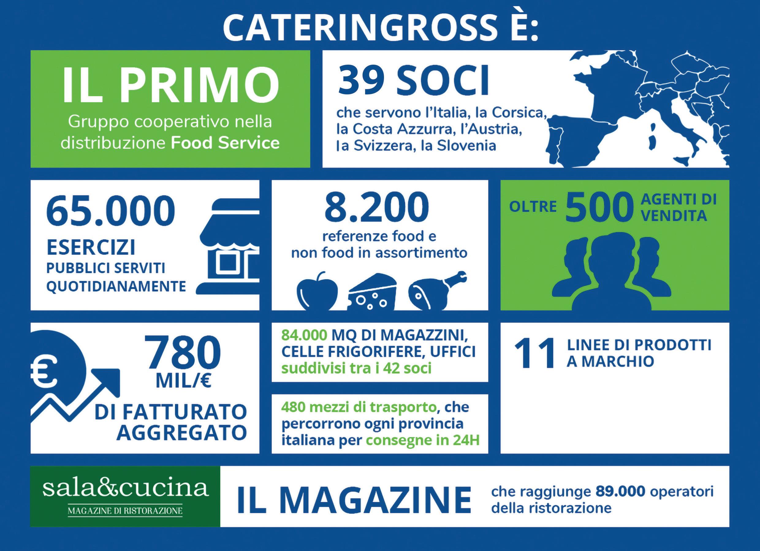 Il primo gruppo della distribuzione italiana nel food service con 39 aziende associate e più di 65.000 esercizi pubblici serviti in ogni regione. DIVENTA ANCHE TU NOSTRO CLIENTE! Cateringross S.C. Via Margotti, 8 40033 Casalecchio di Reno Bologna -Tel. 0516167417 www.cateringross.net