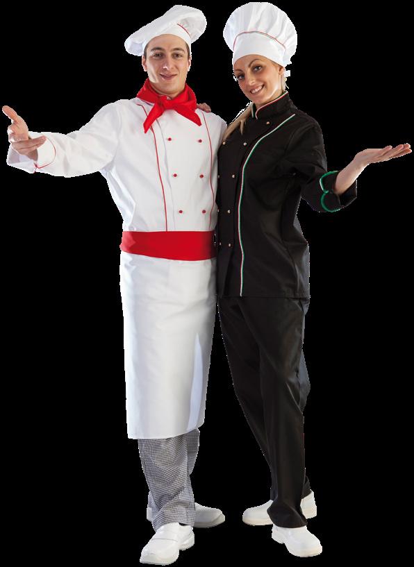 La linea “chef”, recentemente rinnovata, è oggi compo sta di giacche in tessuto gabardine 2/1, 100% cotone sanfor oppure in tessuto 65% poliestere 35% cotone, e sono disponibili con o senza inserti in rete su schiena e ascelle, con chiusura doppio petto con bottoni auto matici a scomparsa o a ciliegia, con o senza taschino porta penna su manica sinistra e lato cuore. Dettagli di stile e di praticità per ogni gusto e necessità. I modelli sono studiati su base tradizionale o in taglie slim per abbracciare una sempre più ampia vestibilità.