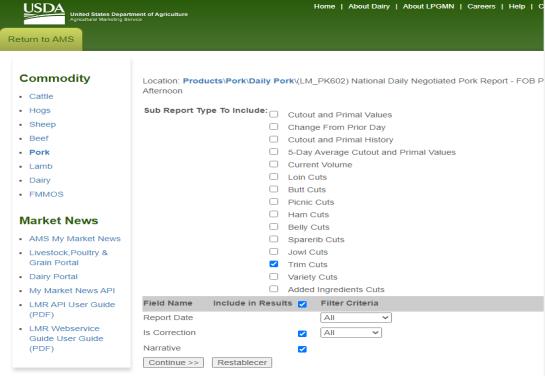 • EE.UU. –Puerco 42% (USDA Pork Trimmings - 42% Trim Combo, FOB Plant)