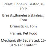 • USA – USDA Turkey - MST, Some skin, under 20% fat, Fresh