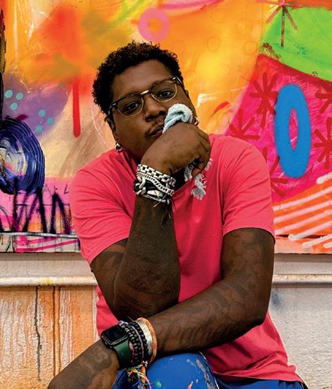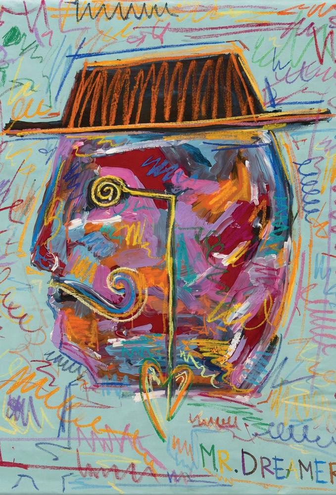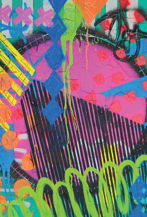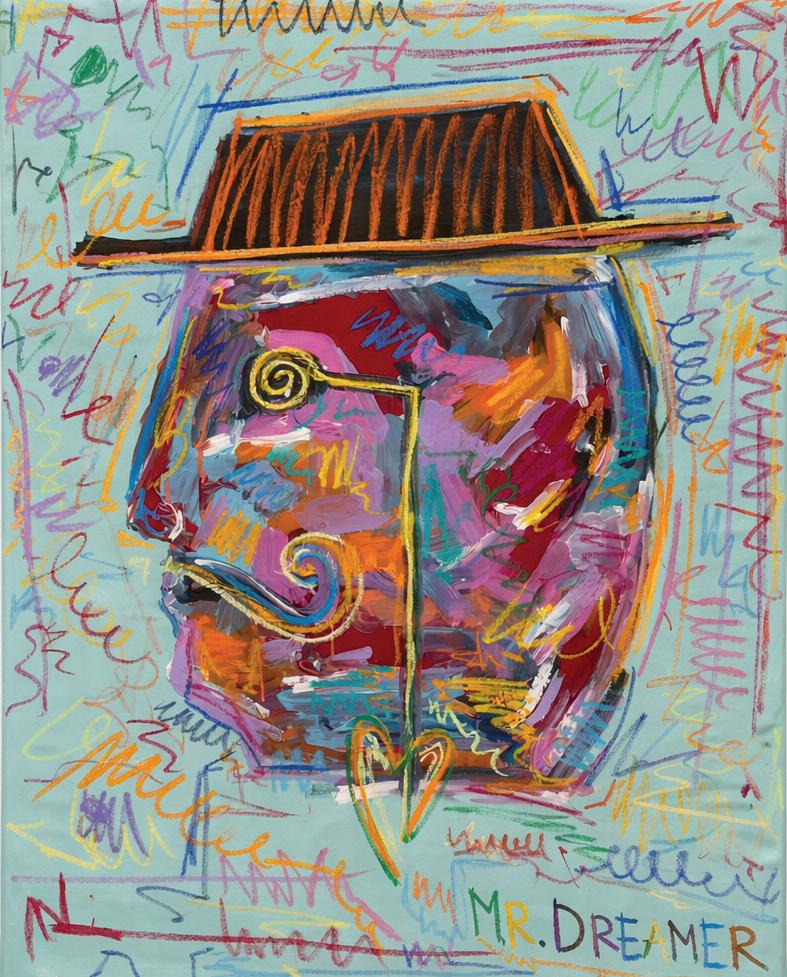 MR. DREAMER depicts a serious man embracing imagination and his inner child, radiating vibrant energy. Lisbon-born Guilherme Atanásio creates abstract, layered works blending colour, texture, and movement, combining engineering precision with rhythm, structure, and global brand collaborations.