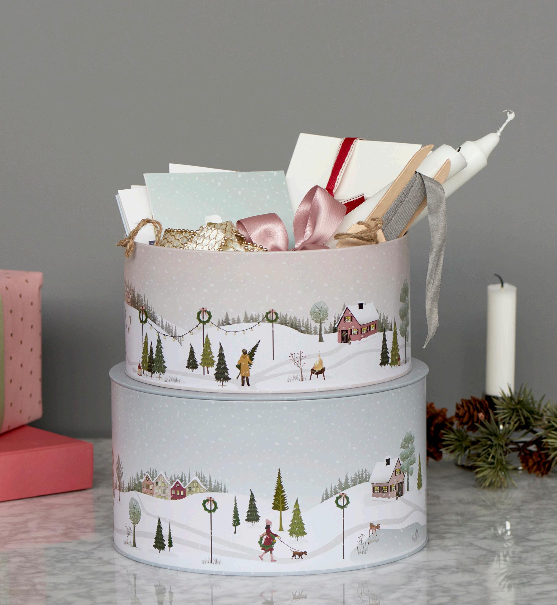 PILLIVUYT VINTER KAKEBOKSER Fine metallbokser med de herlige illustrasjonene som man finner på Pillivuyts koselige Vinter-servise.