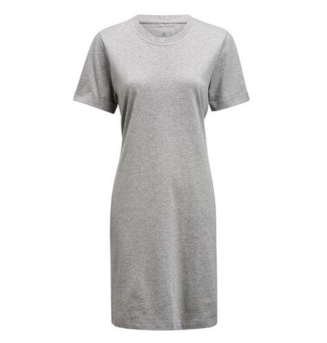 Casual Chic med American T-Shirt Dress. Designad för en enkel men elegant look. Med avslappnad rund halsringning och uppvikta ärmar sätter den en ledig känsla, perfekt för vardagsbruk. En slits på vänster sida ger rörelse och en modern touch.