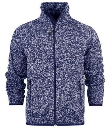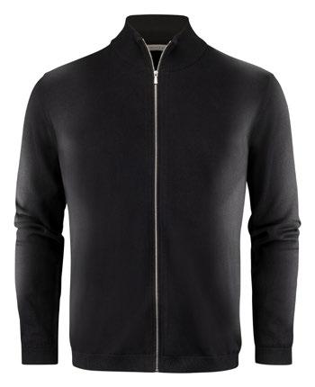 Stickad kofta med metalldragkedja framtill. 1x1 ribb vid krage, ärmar och bottensöm (herr).