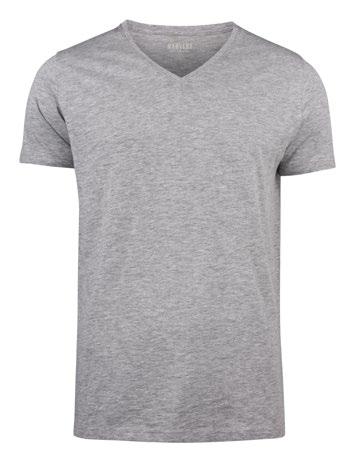 Modern T-shirt med V-ringning. Bomullsgarnet i slubkvalitet ger ett tyg med struktur.