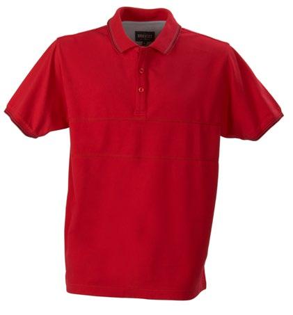 Detaljrik herrpiké med tre knappar och sidoslitsar. Nackband och halvmåne i kontrastfärg. Sydda öljetter under ärmen, flatlocksömmar på bröstet. Krag- och ärmavslut med kontrastränder och jacquardkant. Tvålagerskrage för ökad formstabilitet. Pre-shrunk.
