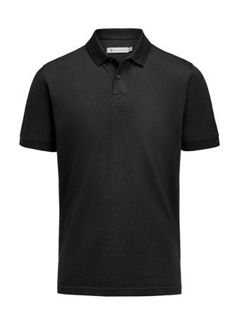 Stilren herrpiké med tre knappar och sidoslitsar. Nackband och halvmåne i kontrastfärg. Tvålagerskrage för ökad formstabilitet.