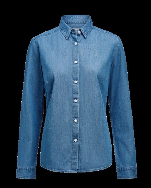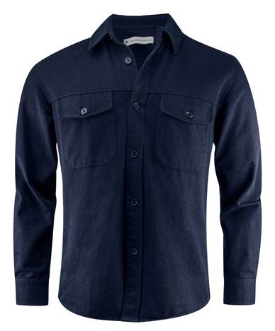 Unisex overshirt i ofodrad bomullstwill med krage, ryggok och knappar fram. Bröstfickor med lock och knapp. Med knappar i manschetten. Välvd nederkant.