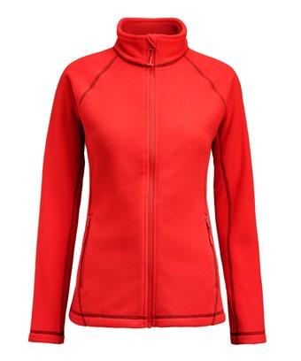Fleecejacka med dekorativa flatlocksömmar och tumgrepp. “Våffelstickad” för bästa isoleringsförmåga och fukttransport.