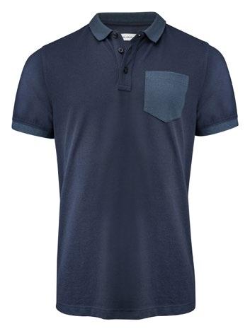 Piké med button down krage. Oxforddetalj i halshål, kontrastribb i ärmavslut. Bröstficka på herrmodellen.